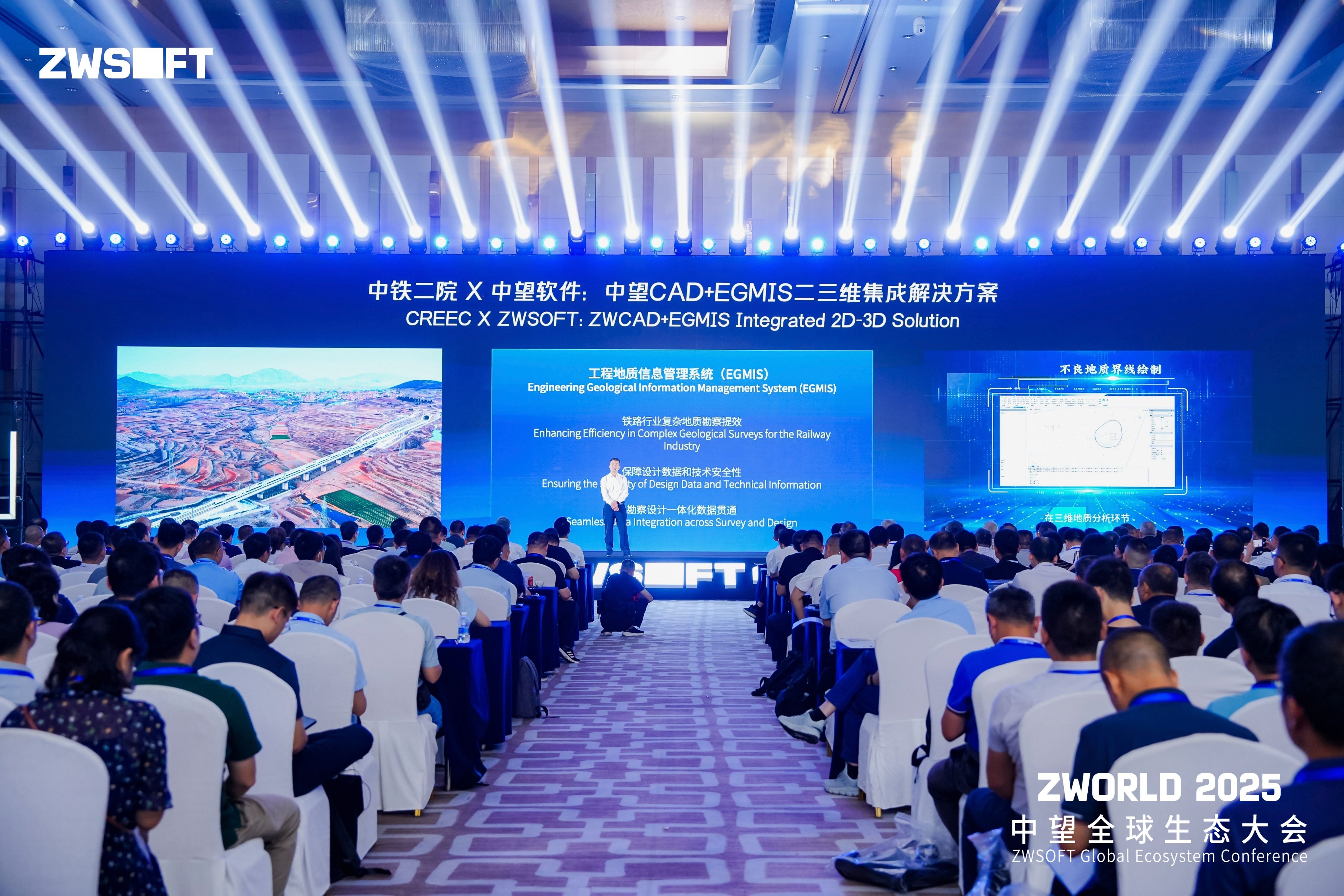 工程建设领域,中铁二院地勘院科创中心主任刘毅强调:“只有以行业业务逻辑为核心、以中望CAD平台为底座、以实际工程项目为牵引,才能真正解决勘察设计的‘卡点’,推动行业技术进步!”