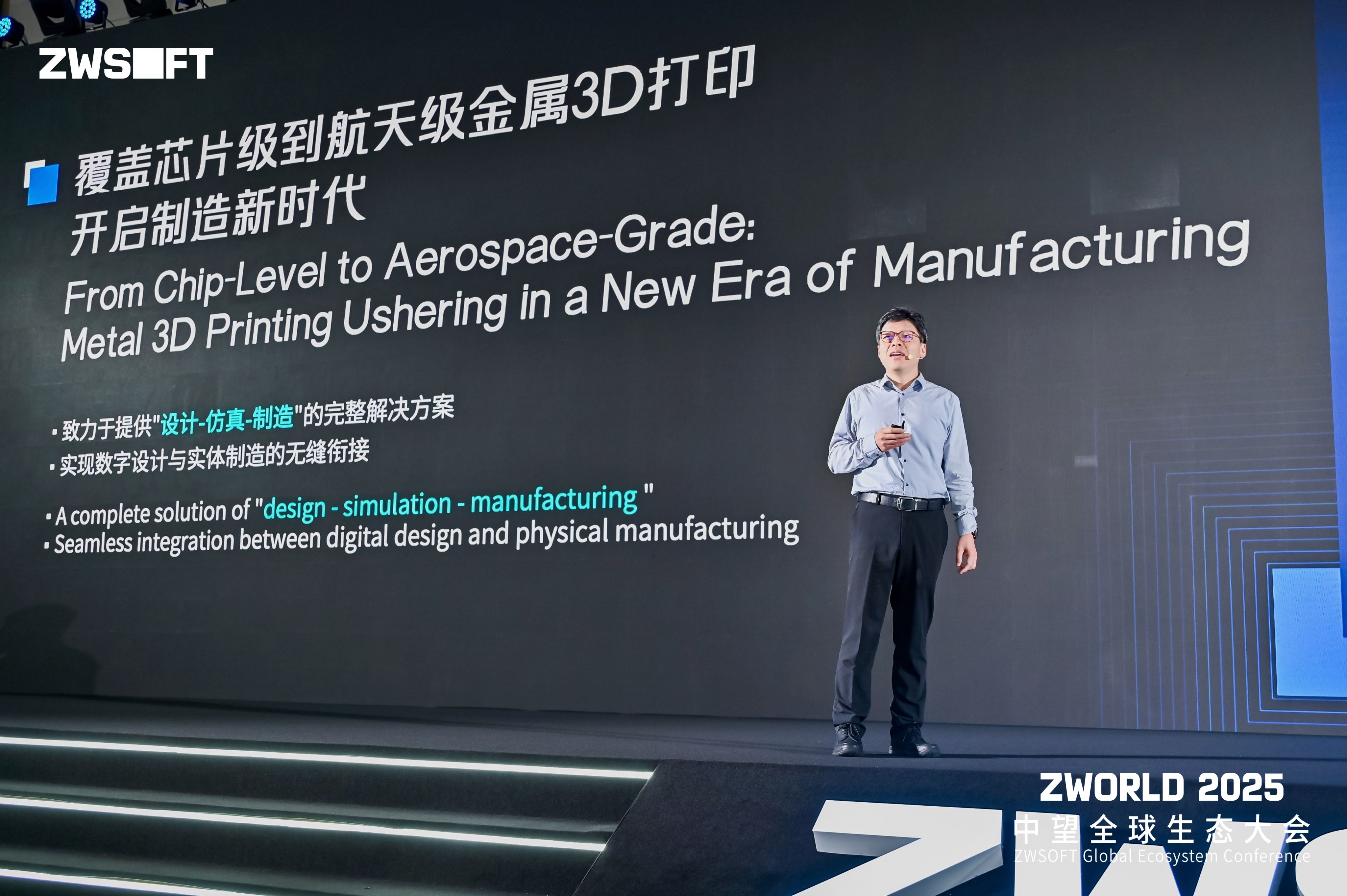希禾制造首席运营官周华林展示了“纯铜3D打印的智造革命”:“金属3D打印打破了传统减材制造的限制,让复杂结构一次成型成为可能。中望3D+流体仿真为我们优化散热模块提供了强大技术支持。”